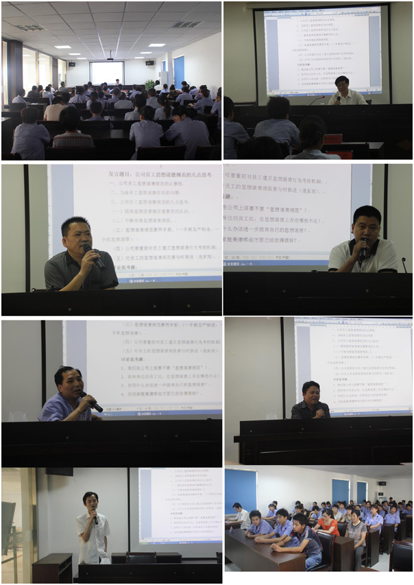 為進一步提升員工思想道德素養(yǎng),挖掘員工內(nèi)在潛力,培養(yǎng)員工胸懷遠大的目標(biāo)與崇高的理想,幫助員工樹立正確的人生觀價值觀,使員工愛崗敬業(yè),誠實可信,積極進取,勇于創(chuàng)新,實現(xiàn)和創(chuàng)造員工和企業(yè)共同成長,公司從七月四日起在公司多媒體室,將對全廠員工尤其是一線的員工,開展為期四周的每周一個下午的時間脫產(chǎn)集中培訓(xùn)。